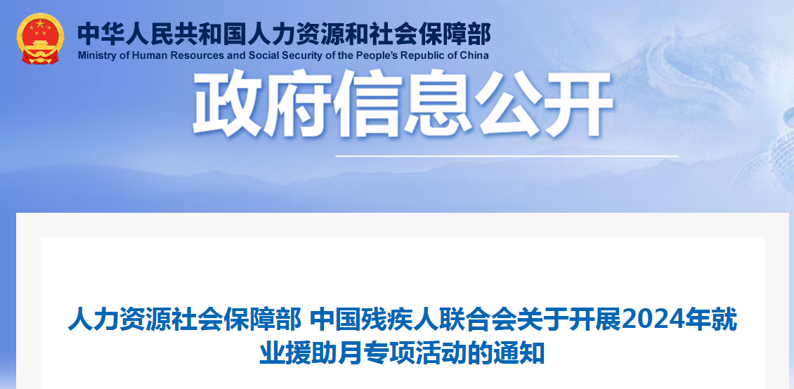 人力资源社会保障部 中国残疾人联合会关于开展2024年就业援助月专项活动的通知