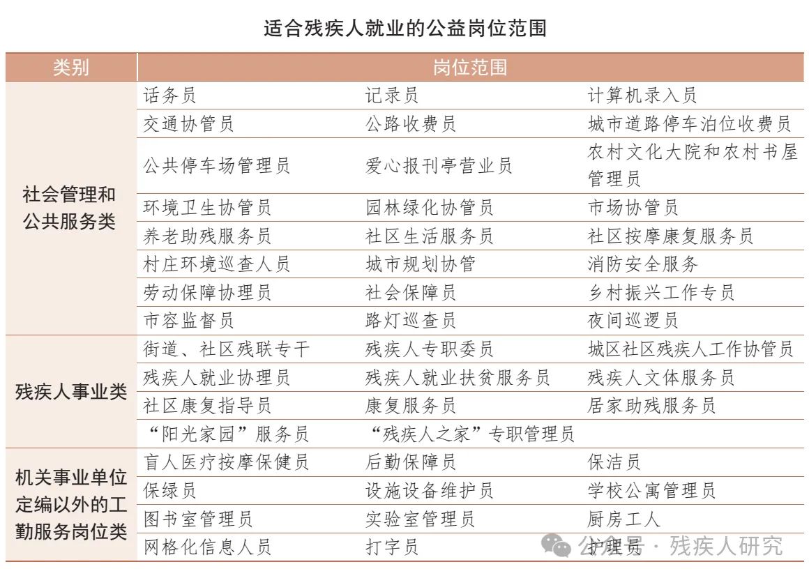 适合残疾人就业的公益岗位范围
