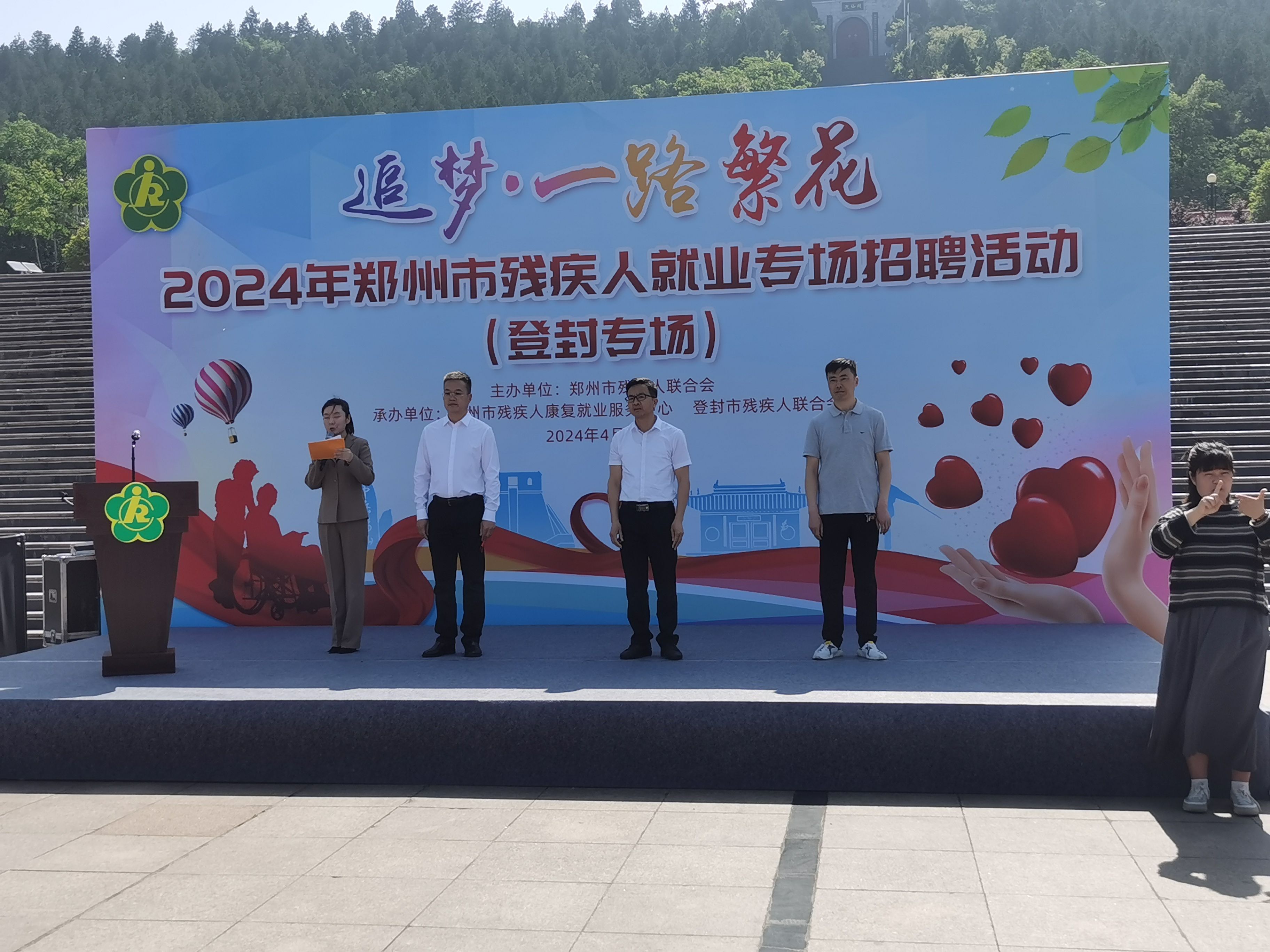 4月26日,以“追梦·一路繁花”主题的郑州市残疾人就业专场招聘(登封专场)活动在登封市迎仙阁广场举行,共有46家用人单位提供了80多个岗位,吸引了登封全市15个乡镇(街道办)近150余名残疾人前来求职应聘。郑州市残联党组成员、副理事长吴志超,登封市残联党组成员、理事长付向阳,郑州市残疾人康复就业服务中心就业培训办公室负责人徐明国,各乡镇(街道)主管副职和残联理事长,各用人单位及残疾人朋友近200余人参加了招聘活动。