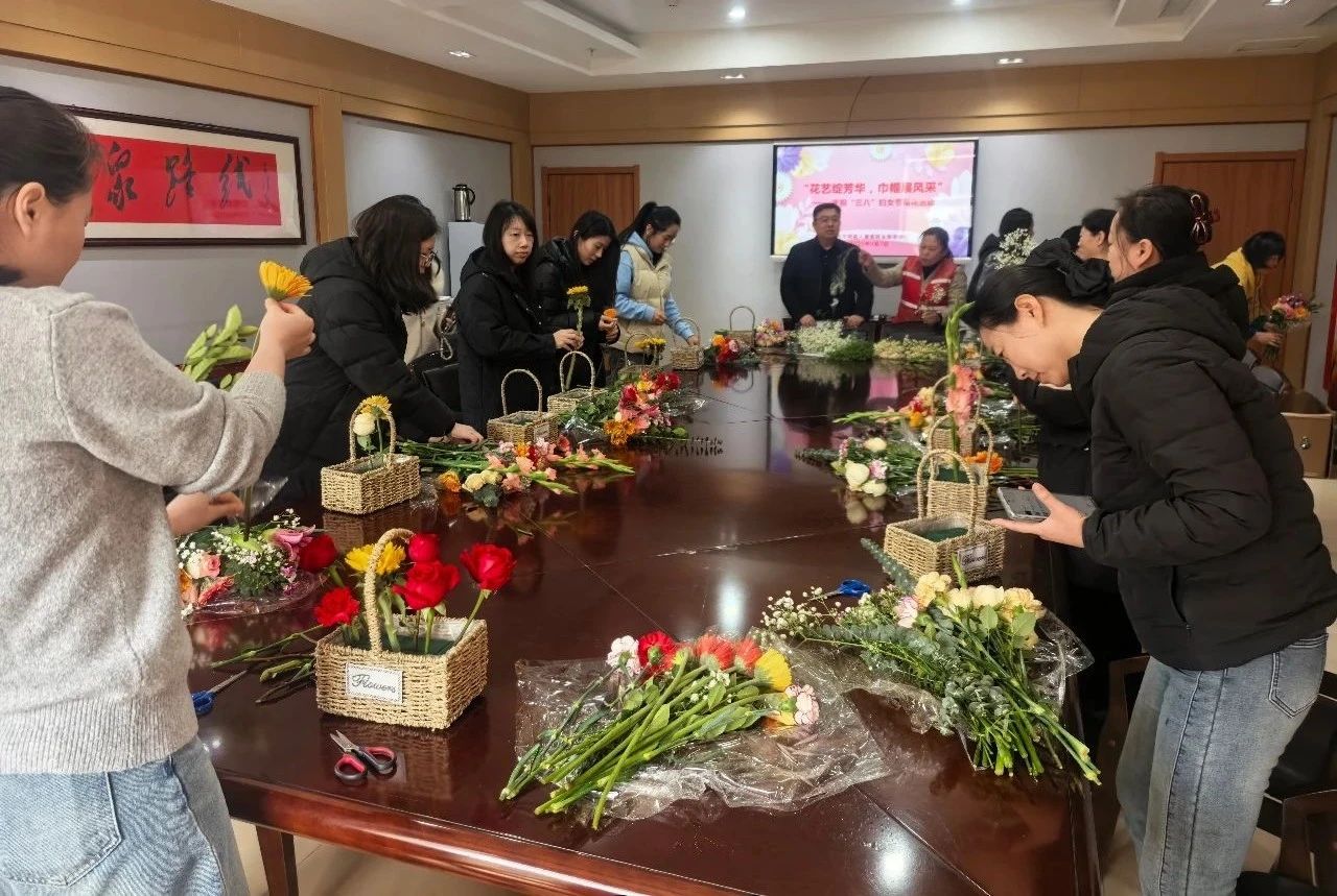 在插花环节,女职工们充分发挥自己的创造力和想象力,将原本普通的花材经过修剪、搭配,变成了一盆盆独具匠心的花艺作品。有的作品色彩鲜艳,充满活力;有的造型简约,优雅大方。女职工们手捧着自己的作品,脸上洋溢着幸福和自豪的笑容,纷纷拍照留念,记录这美好的时刻。