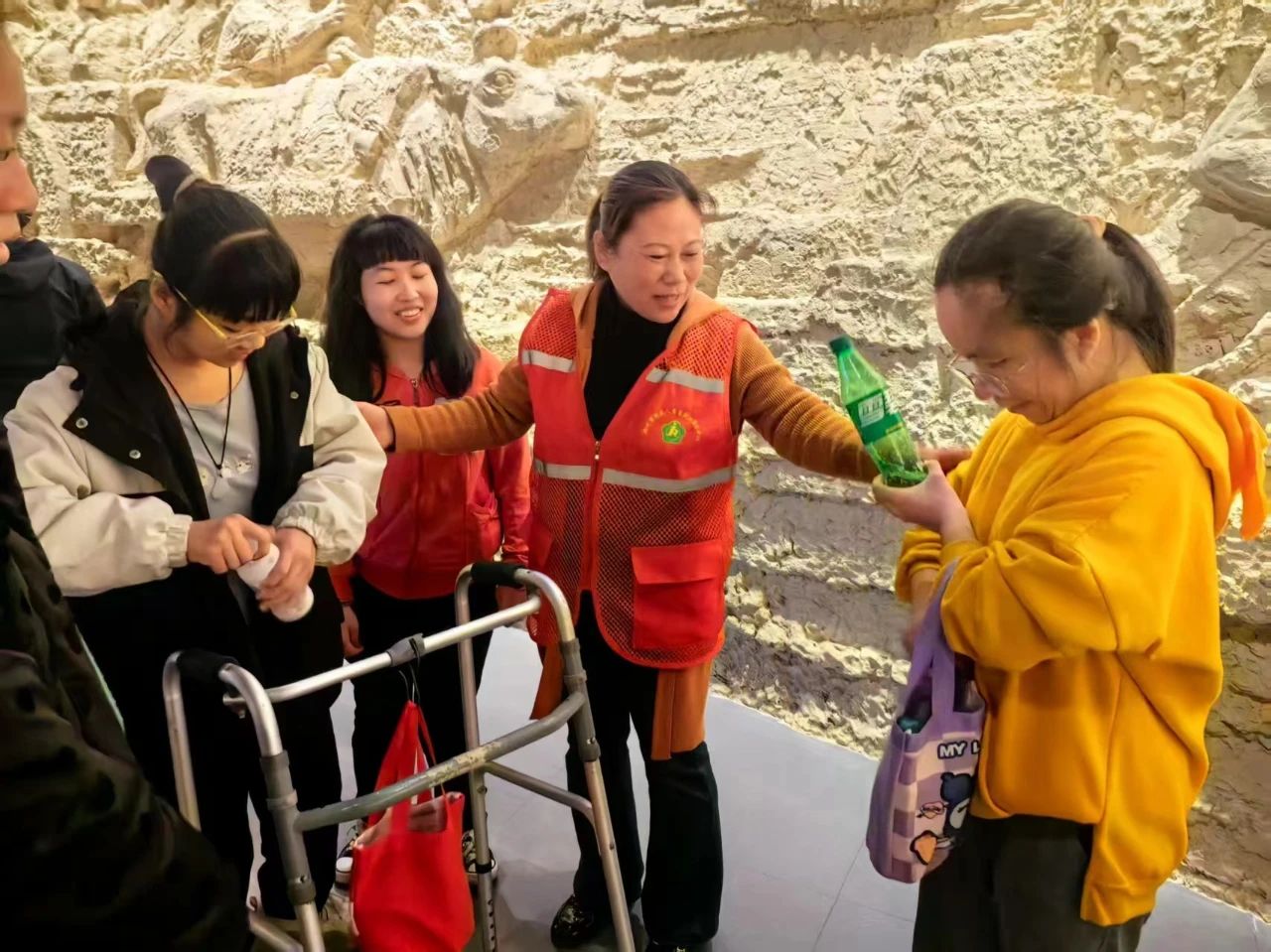 活动当日清晨,20余名志愿者早早来到集合地点,协助残疾学员们上车。他们耐心地帮助行动不便的学员调整座位,系好安全带,确保行车安全。在前往目的地的途中,志愿者们与学员们热情互动,介绍当日行程安排,分享一些关于商城遗址的趣闻轶事,让原本略显漫长的路程充满了欢声笑语。