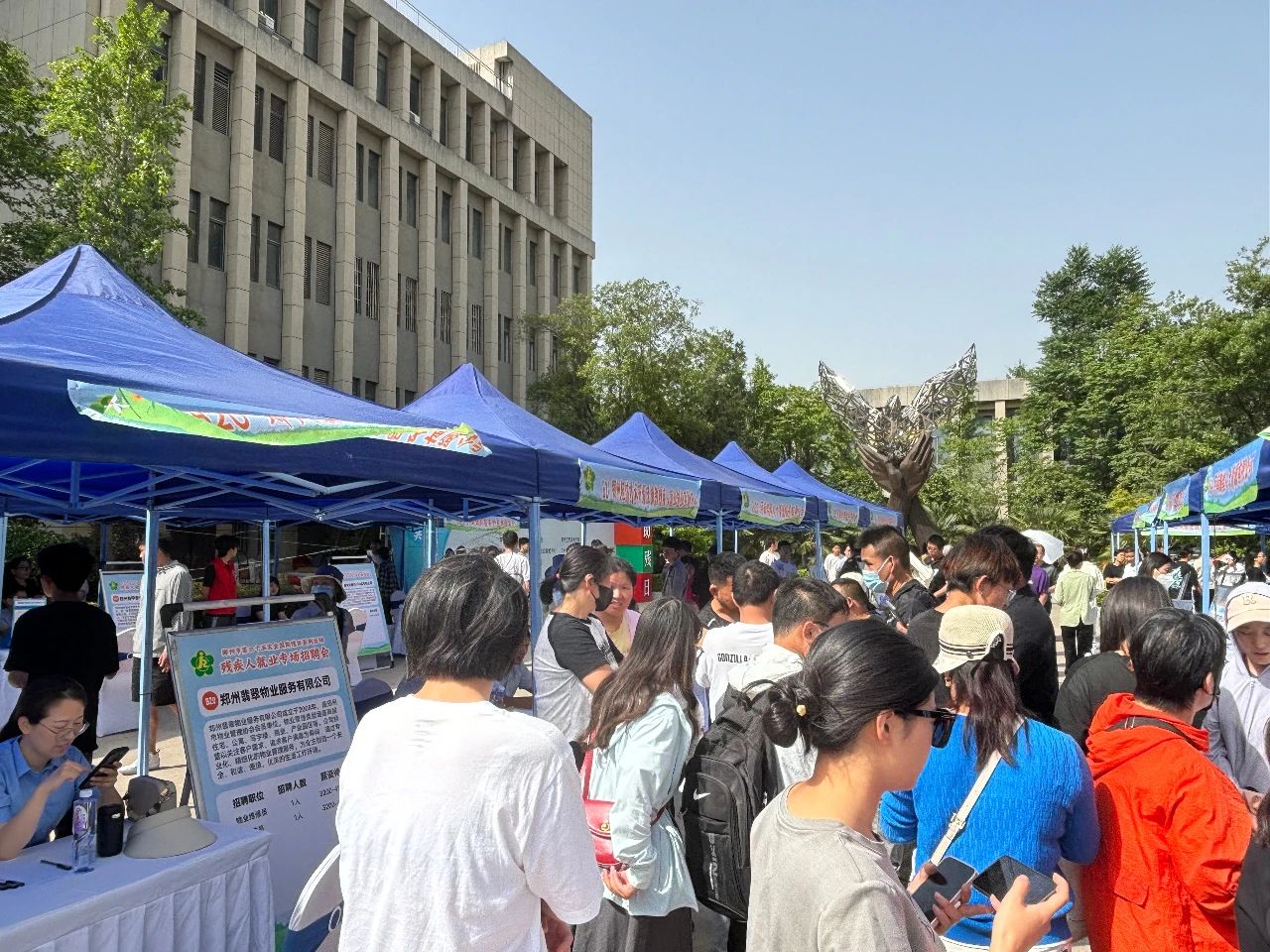 5月18日上午,郑州市第35次 “全国助残日” 系列活动残疾人就业专场招聘会在郑州工程技术学院特殊教育学院举行。本次招聘会由郑州市残疾人联合会和郑州工程技术学院共同主办,吸引了国药控股河南公司、顺丰速运、白象食品等 50 家用人单位参加,提供客服专员、数据管理管理员、物业维修员等112个就业岗位,总计1494个就业职位,涵盖了制造业、服务业、餐饮业、高新科技等传统领域以及视频剪辑师、人工智能训练师等新兴职业,最终达成就业意向165个;同步开展的直播带岗吸引1.7万人次观看,达成线上意向40个。