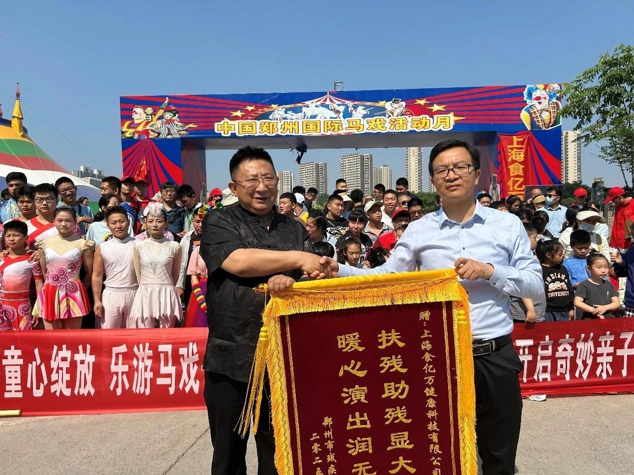 活动伊始,郑州市残联向主办方上海食亿万健康科技有限公司赠送“扶残助残显大爱 暖心演出润无声”锦旗,感谢企业的爱心善举。