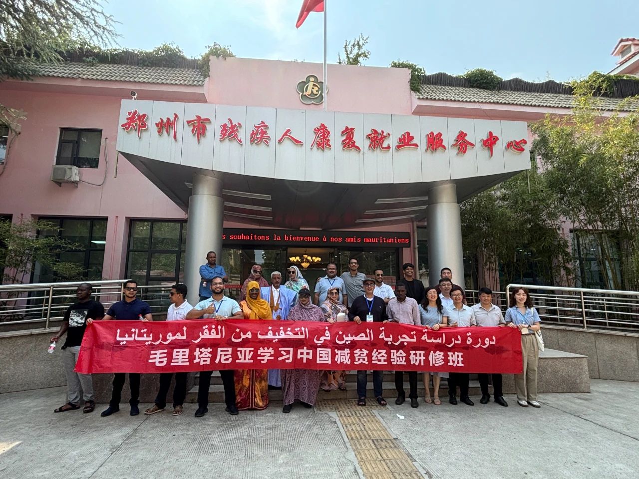 7月14日,毛里塔尼亚学习中国减贫经验研修班一行35人,到访郑州市残疾人康复就业服务中心,考察康复辅具适配、听障儿童康复及残疾人文化产业基地建设,调研中国助残模式。