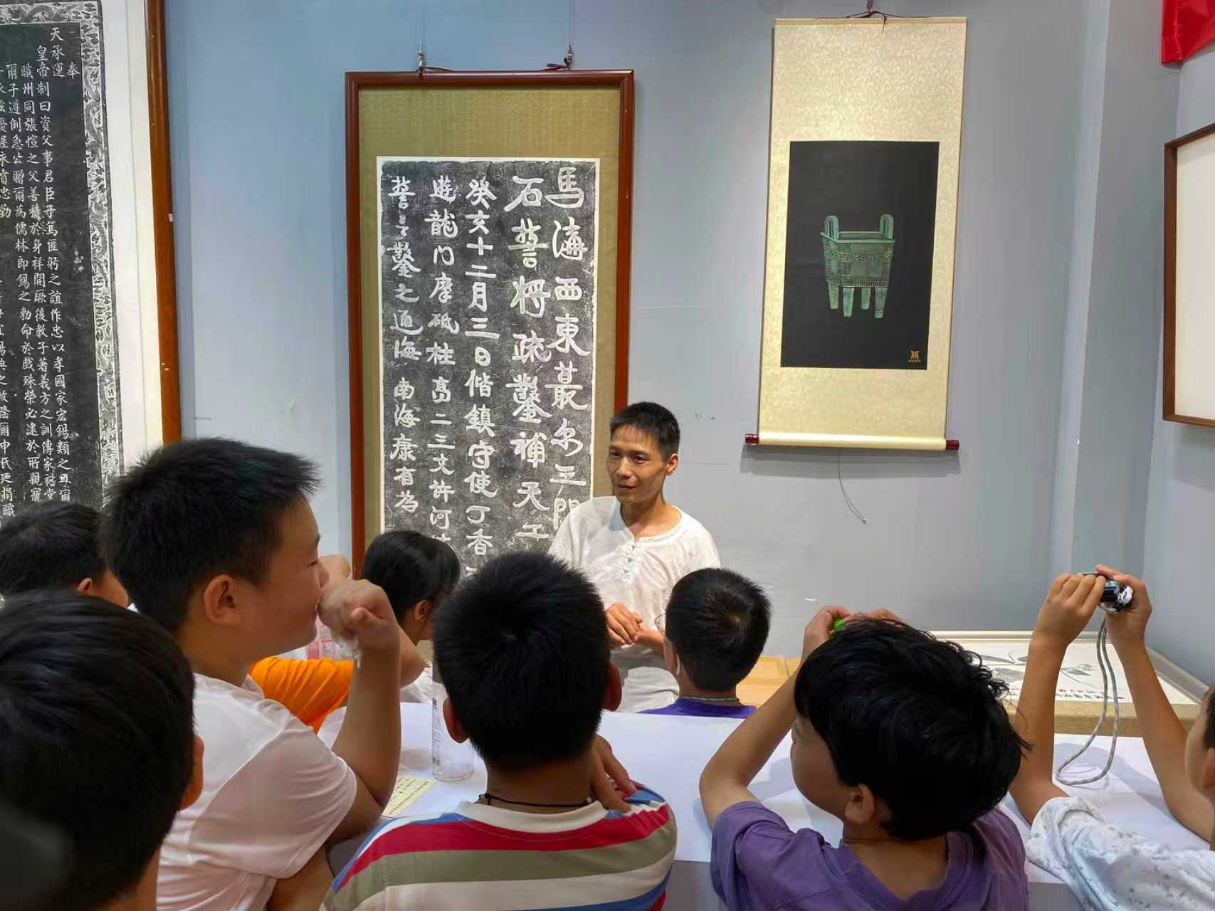 经开区文明实践中心联合郑州市残疾人康复就业服务中心,打造“金石传拓非遗传承保护”项目,将非遗技艺转化为文明实践新载体。通过“技艺展示+动手体验”模式,走进学校、社区、农村和企业开展了多场非遗实践志愿服务活动,吸引200余名群众参与。活动中,非遗传承人冯万鹏化身“非遗传承导师”,带领青少年拓印汉画像砖、青铜器纹饰等区域文化符号,志愿者的广泛参与和辅助引导,既赋予传统技艺新活力,又实现助残与传承“双向赋能”。一名参与学生感慨:“亲手触摸拓片,听取了拓片的故事,就像打开了历史的‘时光机’。”