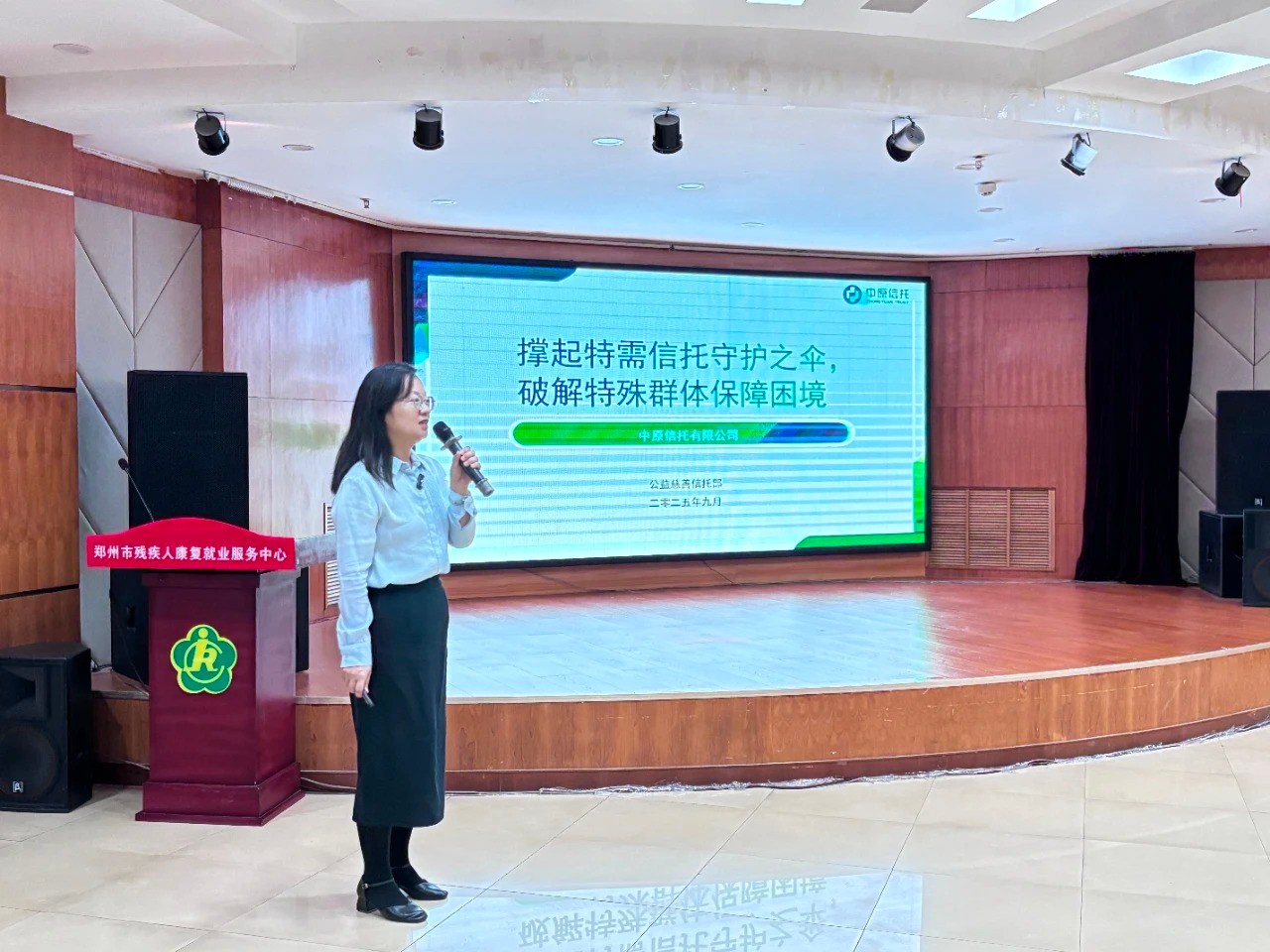 2025年9月27日下午,由郑州市残疾人联合会联合河南省残疾人福利基金会、中原信托有限公司主办,河南省精神残疾人及亲友协会、郑州市苗雨田心智障碍者服务中心承办的“善行中原—暖星计划·家庭成长护航项目”首场研讨活动,在郑州市残疾人康复就业服务中心成功举办,活动获河南省残疾人联合会指导。