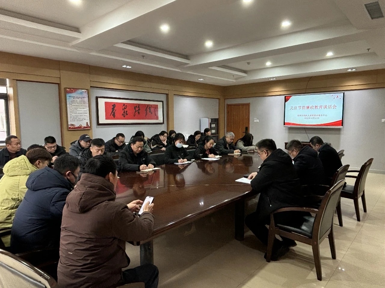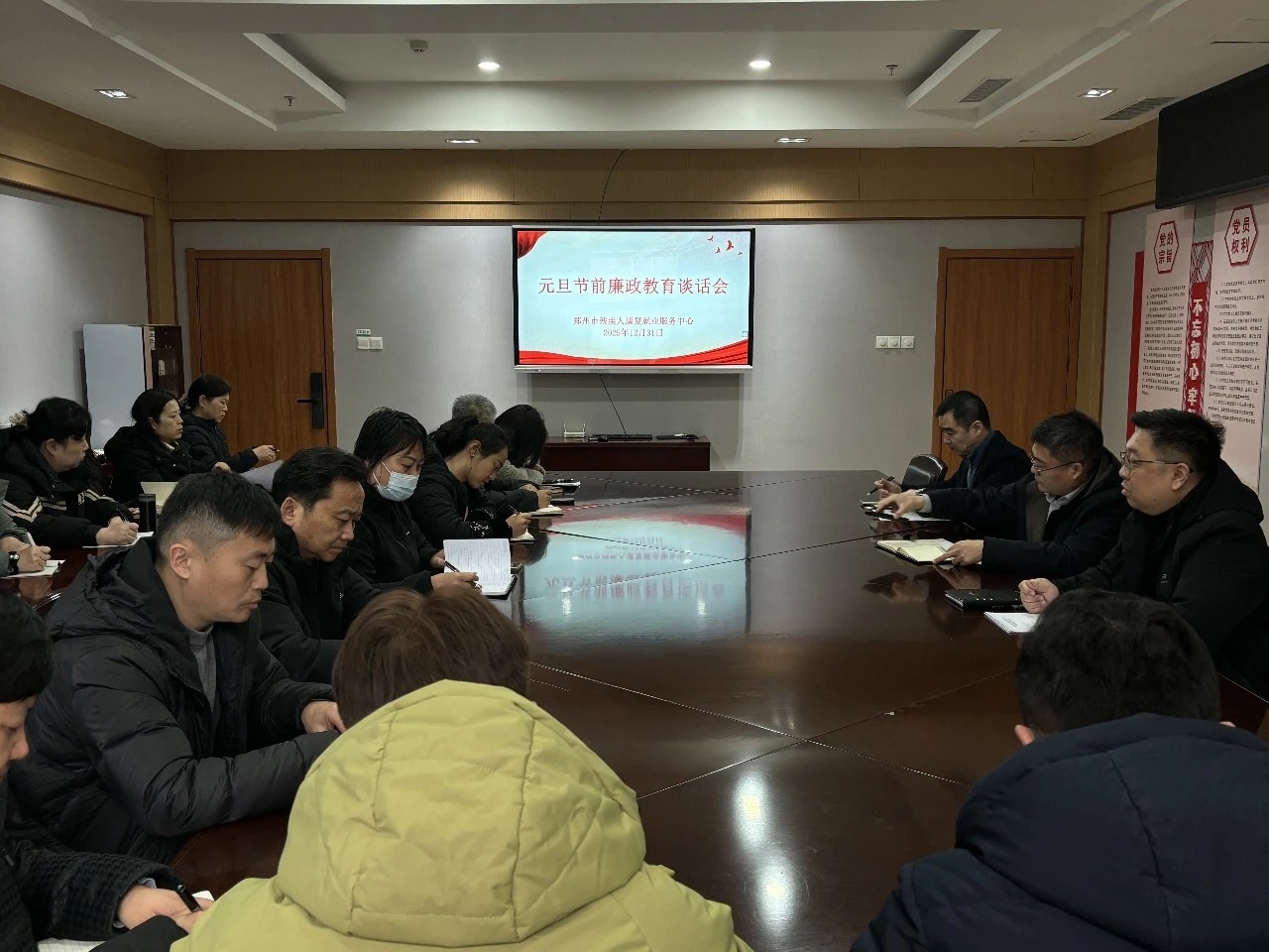为持续巩固深化全面从严治党成果,筑牢全体工作人员廉洁自律思想防线,营造风清气正的节日氛围,12月31日上午,郑州市残疾人康复就业服务中心(以下简称“康就中心”)召开“2026年元旦节前廉政谈话会”。康就中心党总支书记任成功作集体廉政谈话,全体干部职工参加会议。