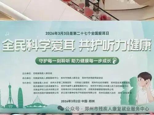 耳朵是人们感受世界的窗口之一,保护好听力,才能聆听美好世界。3月2日,郑州市第27次全国“爱耳日”宣传教育活动在金水区花园路万达坊举行。据悉,本次活动以“全民爱耳护耳·共护听力健康”为主题,由省残联主办,省残疾人康复服务中心、市残联、市扶残助残促进会承办。