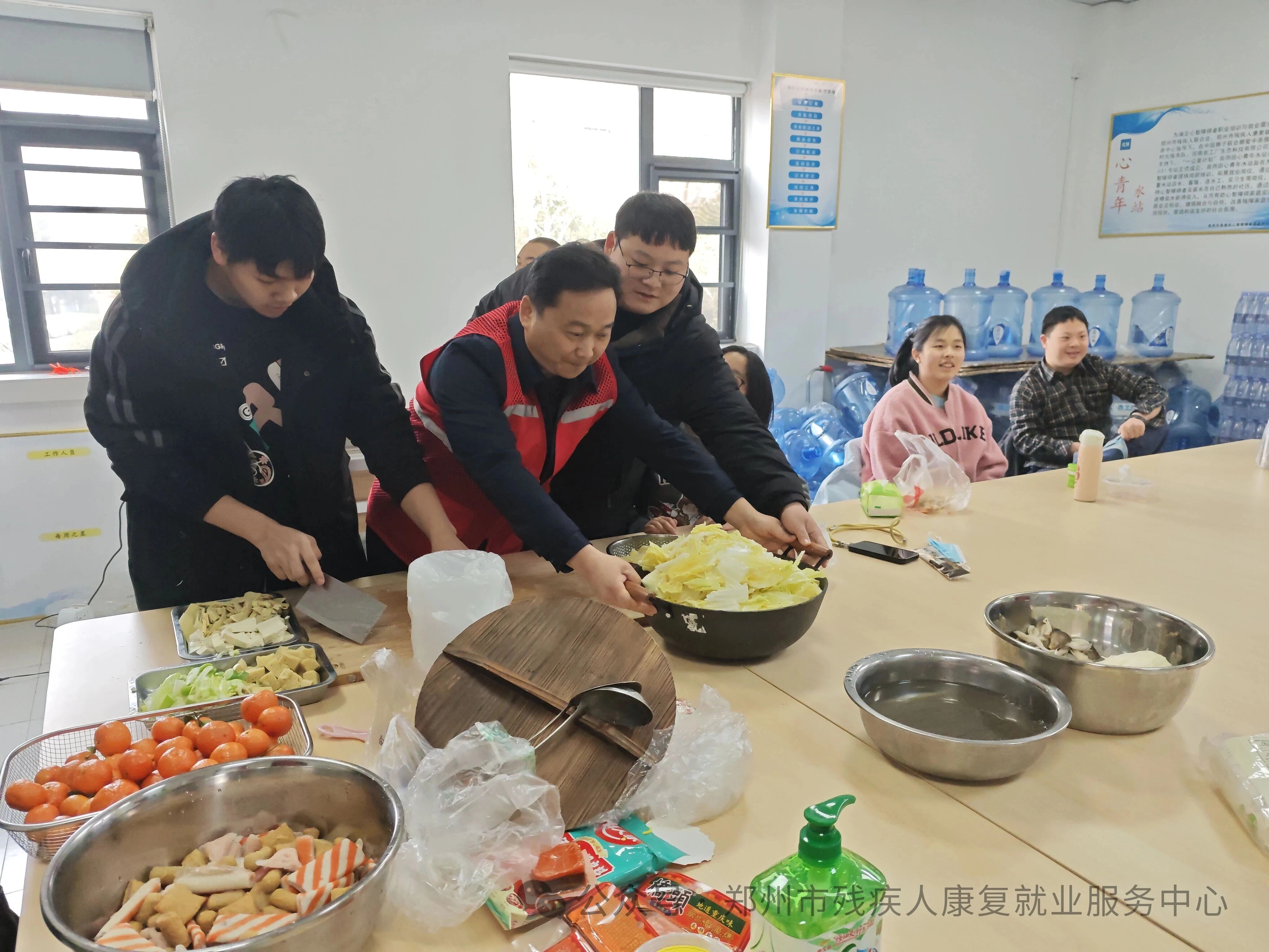 融学活动以日常烹饪技能为教学内容,分为食材识别、工具使用、清洁处理、安全备餐等环节,通过步骤分解与实时指导,确保参与者在动手过程中逐步掌握关键技能,强化操作记忆与安全意识。在志愿者与指导老师的“一对一”辅助下,“心青年”逐步完成了腊八粥熬制与火锅食材准备等实践任务。实践结束后,“心青年”共同用餐,在真实生活场景中巩固学习成果,有效提升了技能应用的信心与熟练度。