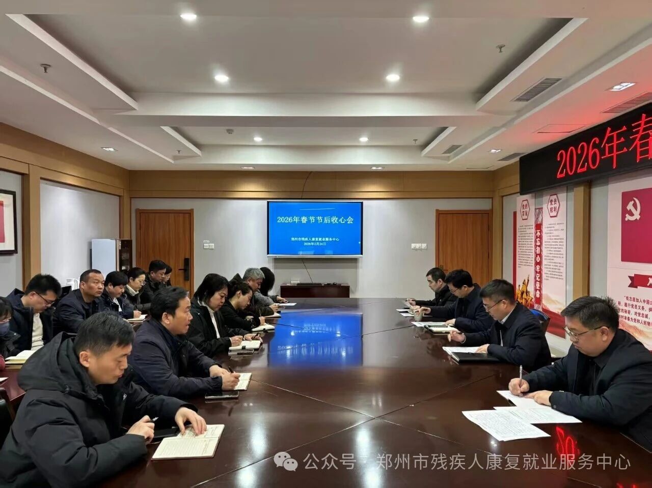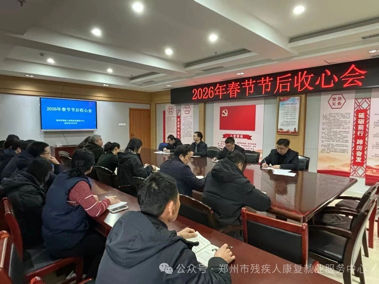 2月24日,春节假期后的首个工作日,郑州市残疾人康复就业服务中心召开节后收心会,号召全体干部职工迅速从“节日模式”切换到“战斗模式”,全面开启2026年高质量发展新征程。中心领导班子成员及全体干部职工参加会议,市残联党组成员、副理事长吴志超出席会议并讲话。