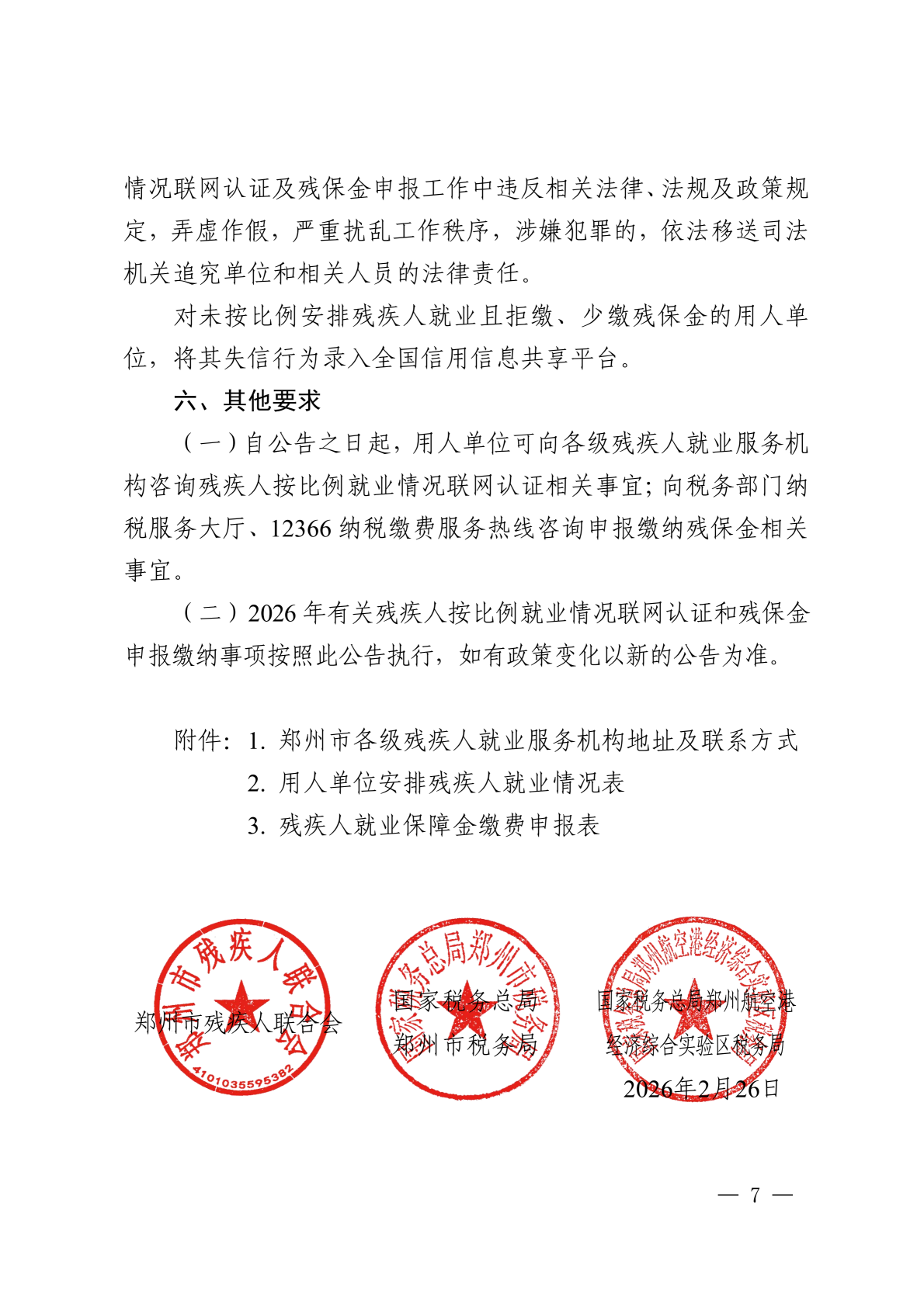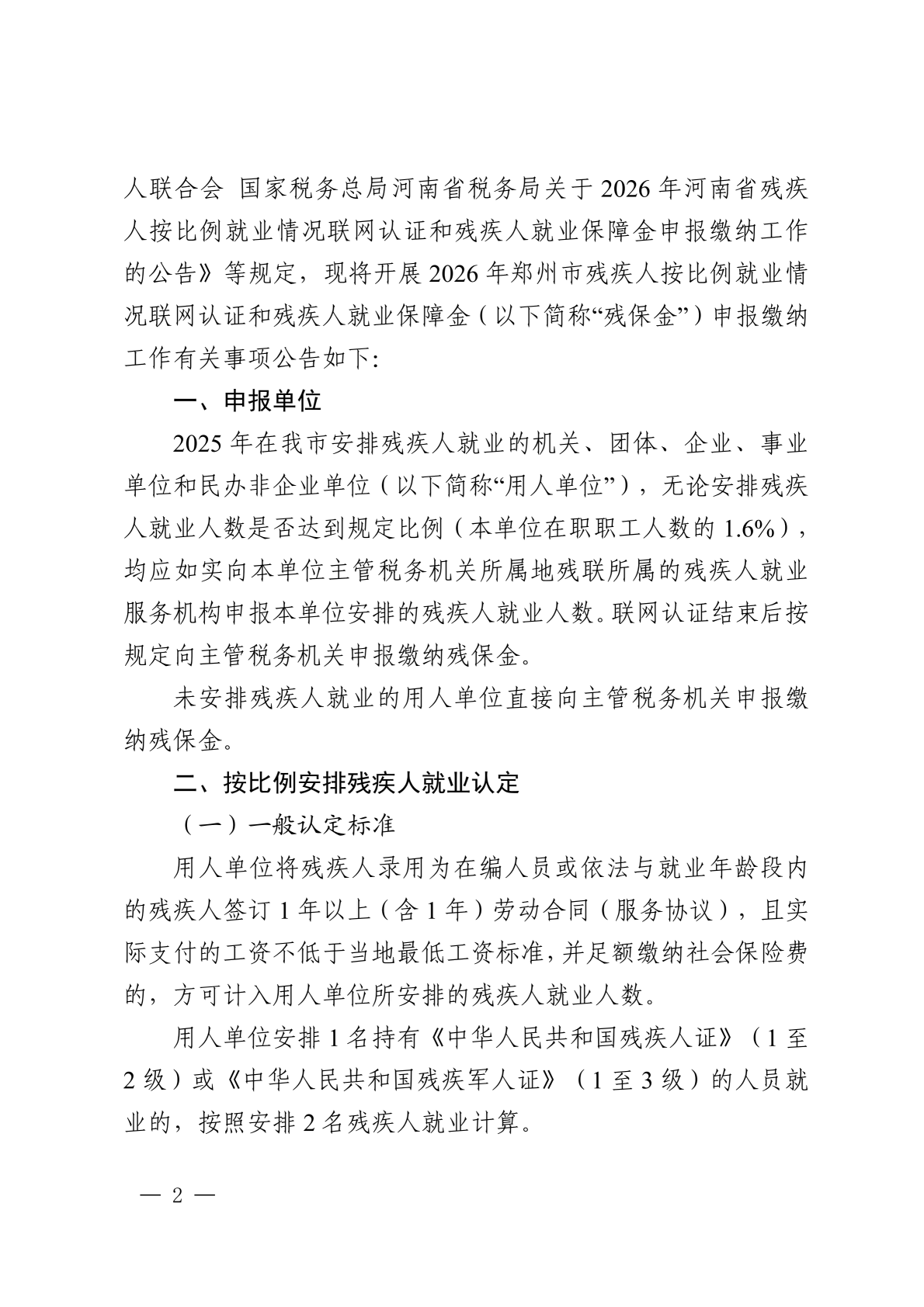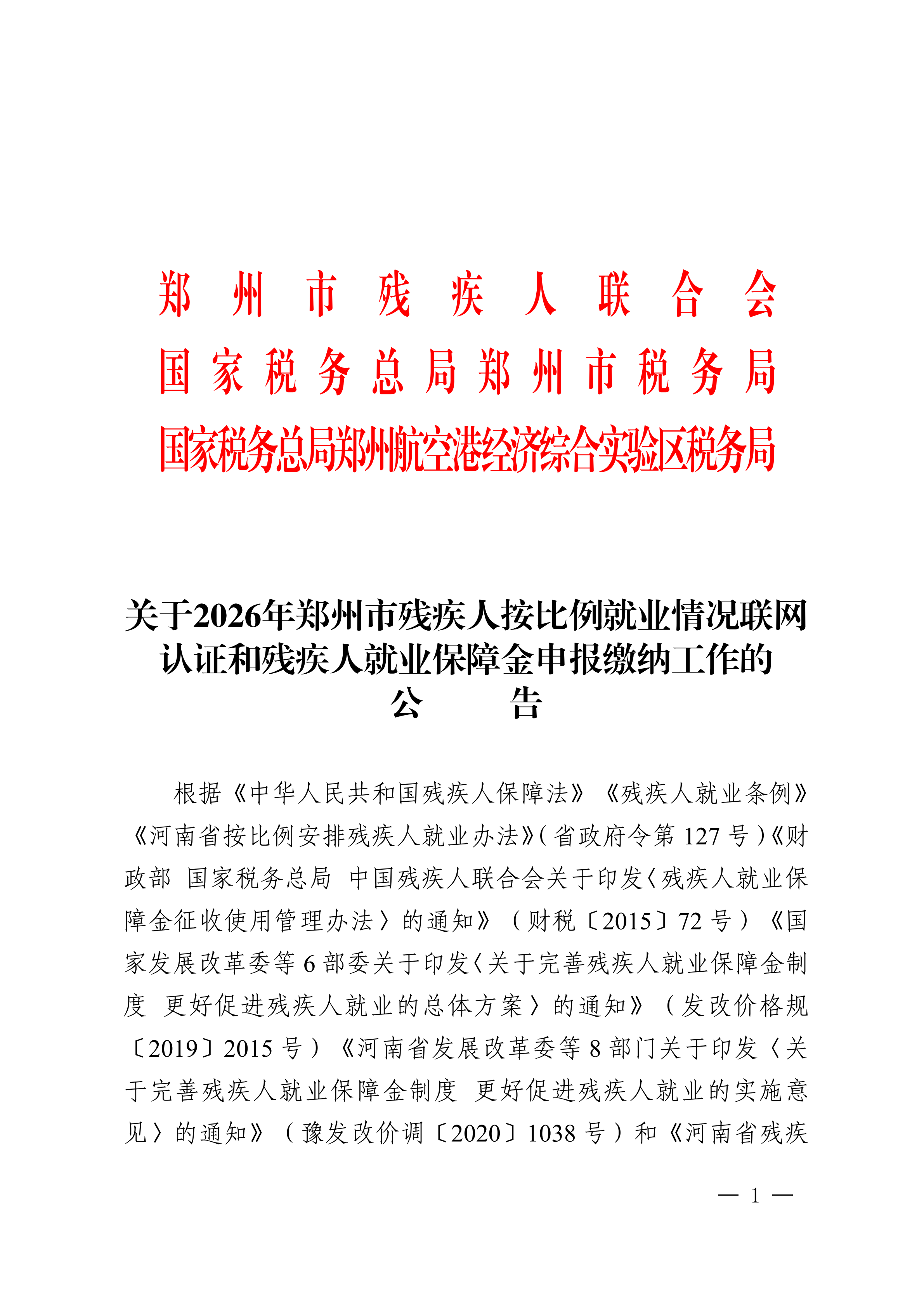 关于2026年郑州市残疾人按比例就业情况联网认证和残疾人就业保障金申报缴纳工作的公告
