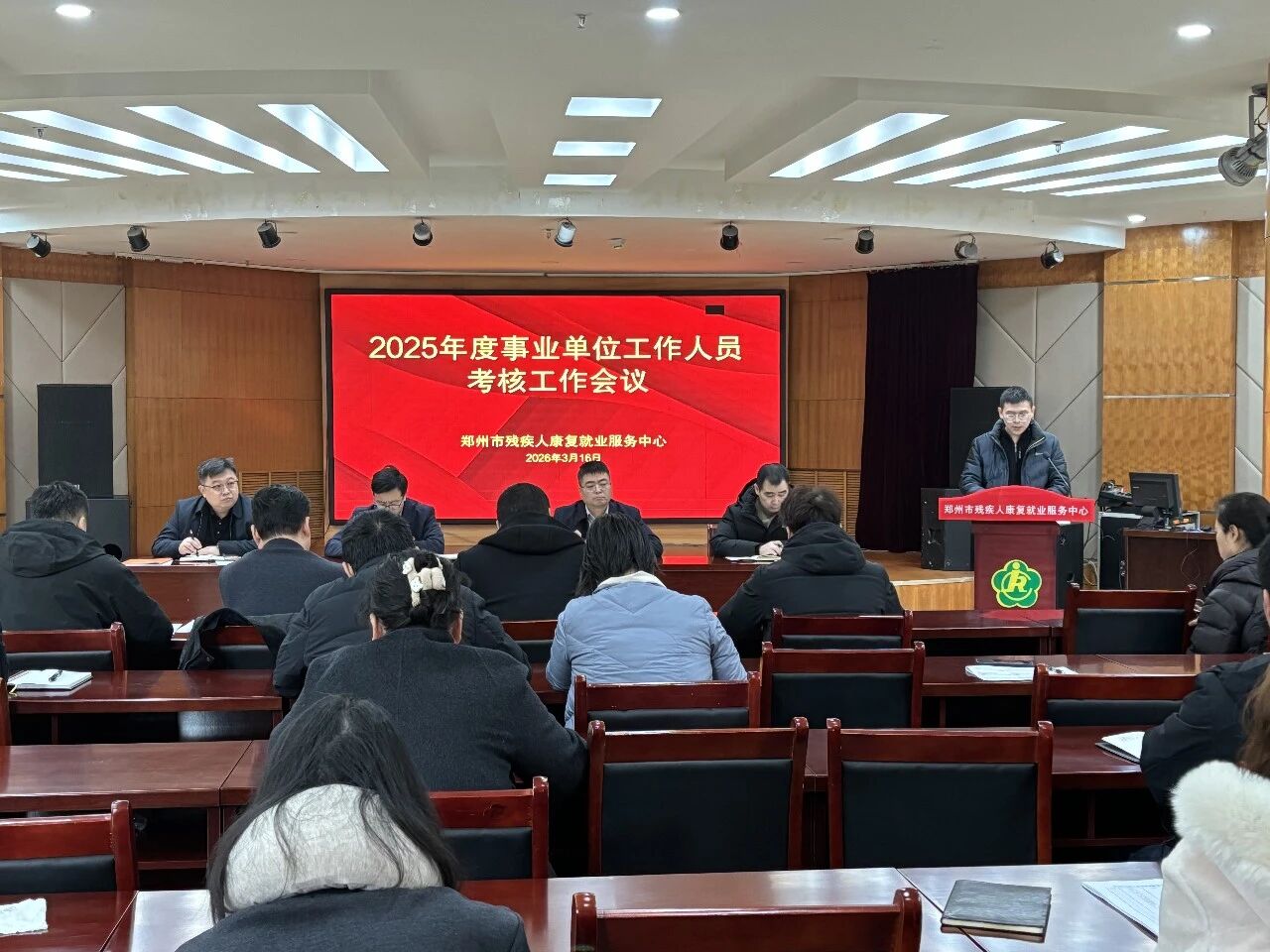 为全面总结2025年度工作成效,科学评价工作人员履职情况,3月16日上午,郑州市残疾人康复就业服务中心组织召开2025年度事业单位工作人员考核工作会议。中心全体在编人员参加会议,会议由中心负责人任成功主持,市残联党组成员、副理事长吴志超莅临指导。